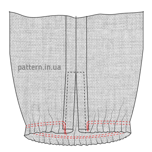 12. Прокласти 2 рядки широким стібком по низу рукава і стягнути до ширини манжета