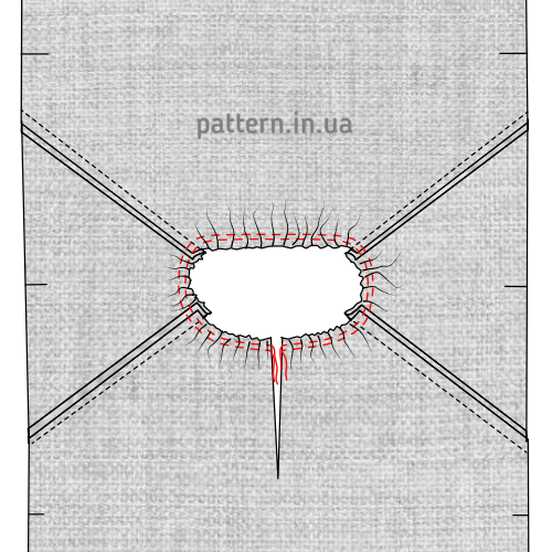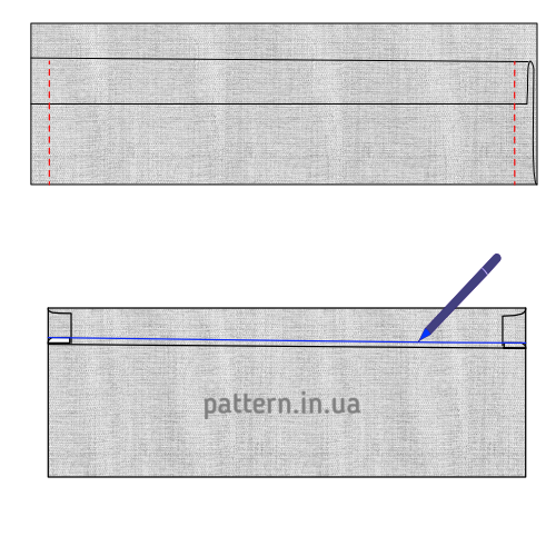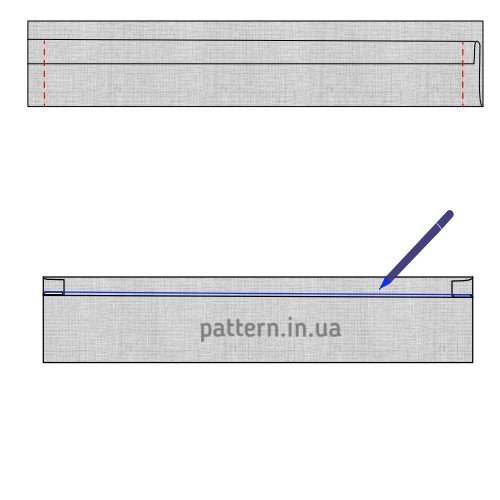 - вздовж запрасованого припуска по внутрішній частині намітити лінію пришивання
