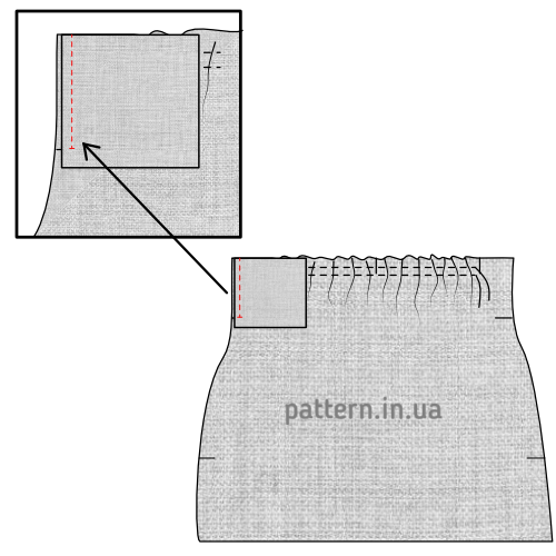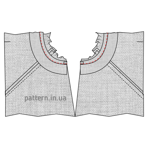 3. Пришити уставку до деталей переда і спинки. Запрасувати на уставку